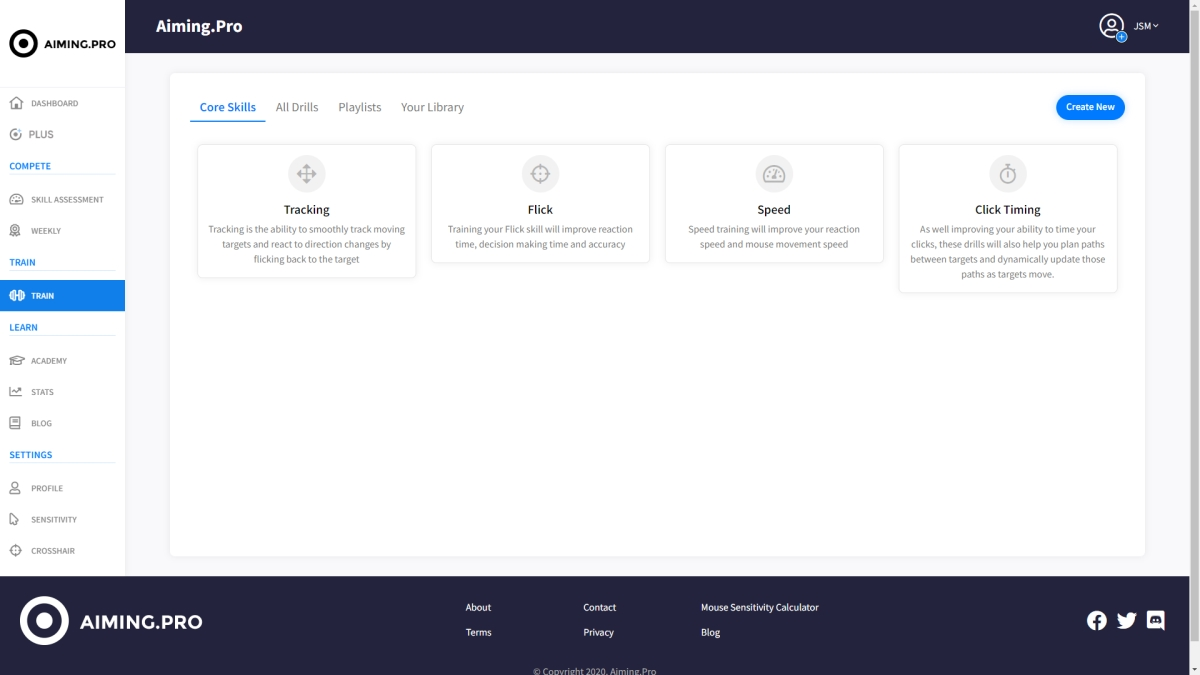 To do this, go to the “Train” Section of the site. This can be seen on the left side where the Dashboard is. You will be met with the core skills categories.