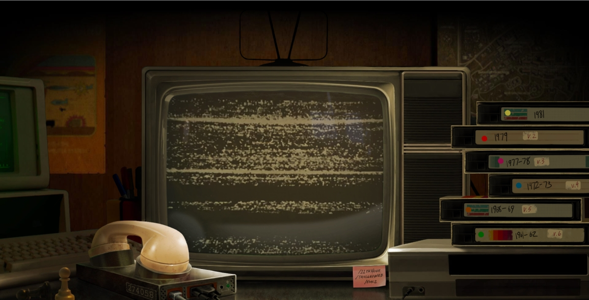 When clicking onto the website, you are met with room ressemblent from times past. An old TV is seen with no signal. Over the past week or so, these were where the messages and the teaser trailer were displayed. At the time, there was a digital timer on the tape player at the bottom right of the screen. Before the first ever teaser was launched, the timer displayed the date and time of which the teaser would drop.