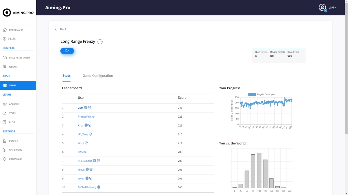 With an Aiming.Pro plus subscription, you can choose to create your own custom games with our intuitive builder. Stats related to this feature are also tracked.