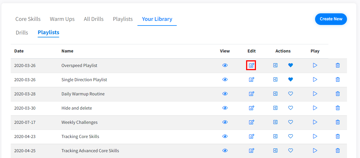 Drills can be edited from Train→Your Library→Playlists